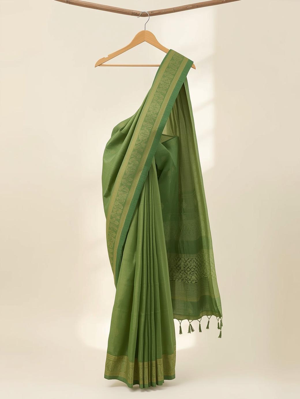Whether you're attending a wedding ceremony, a family function, or celebrating a festival, this green sharee ensures you stand out with sophistication and style. Pair it with your favorite accessories to complete the perfect ethnic look.