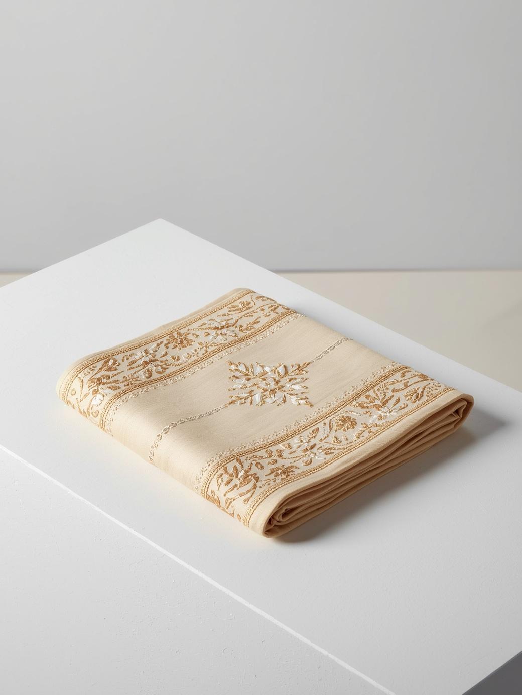 Presenting a beautifully folded elegant sharee, designed to highlight its sophistication and fine detailing even before it is worn. The neat and graceful fold enhances the visual appeal, making it perfect for display in eCommerce stores, boutiques, or gifting purposes.