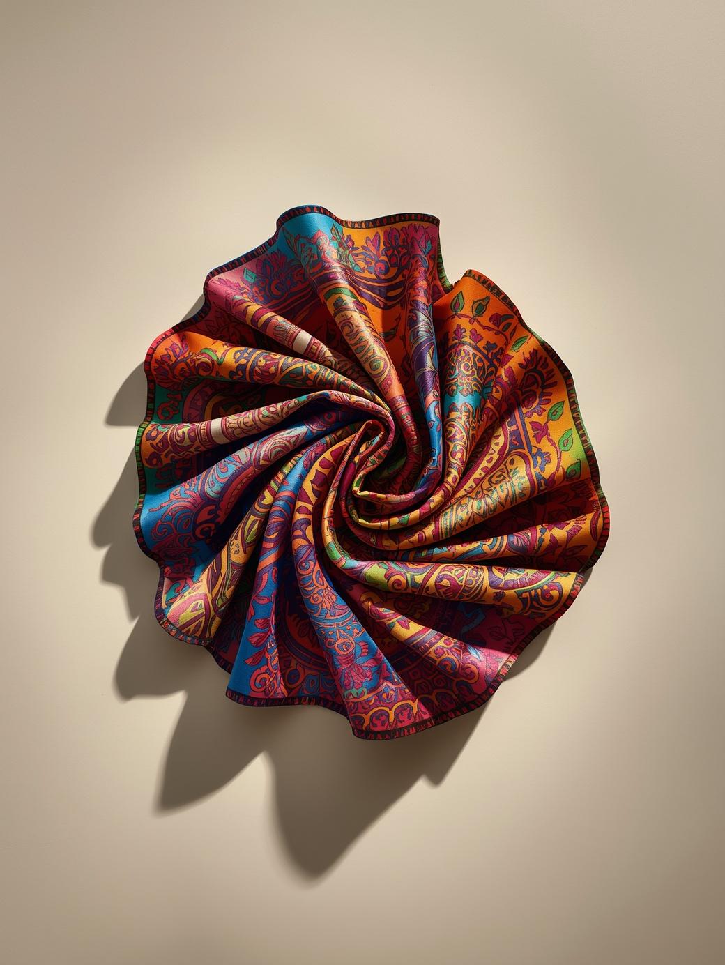 The flat lay presentation allows a clear and complete view of the fabric, making it ideal for eCommerce listings, social media promotions, and catalog displays. Every fold and angle is thoughtfully styled to emphasize the craftsmanship and visual appeal, ensuring customers can fully appreciate the product at a glance.