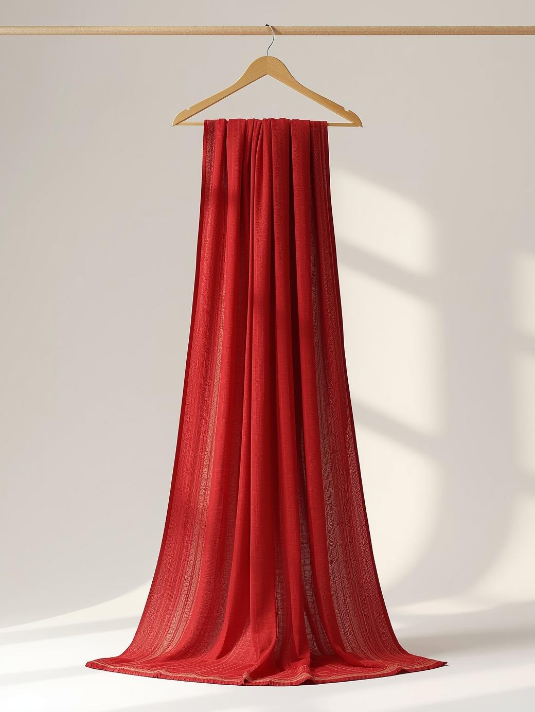 Premium traditional red sharee, exquisitely draped to showcase timeless elegance and rich cultural beauty—perfect for weddings and grand occasions.